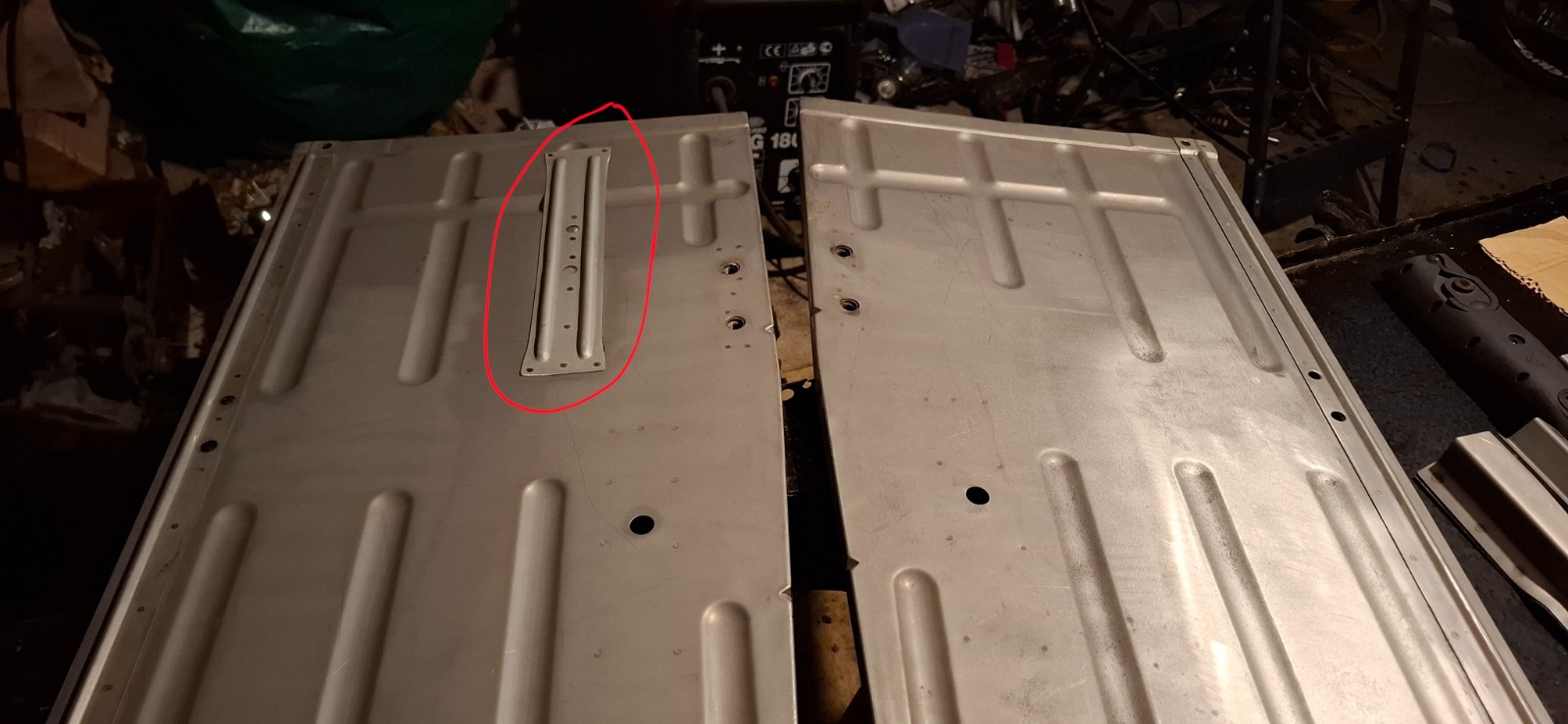 => 2 planchers gauche et droit différents (voir photo)... l'un avait une tôle renfort pour, après explication, ceux qui veulent fixer un pot d'échappement sortant à l'arrière mais selon la demande du client... or, moi, je n'avais pas demandé cela