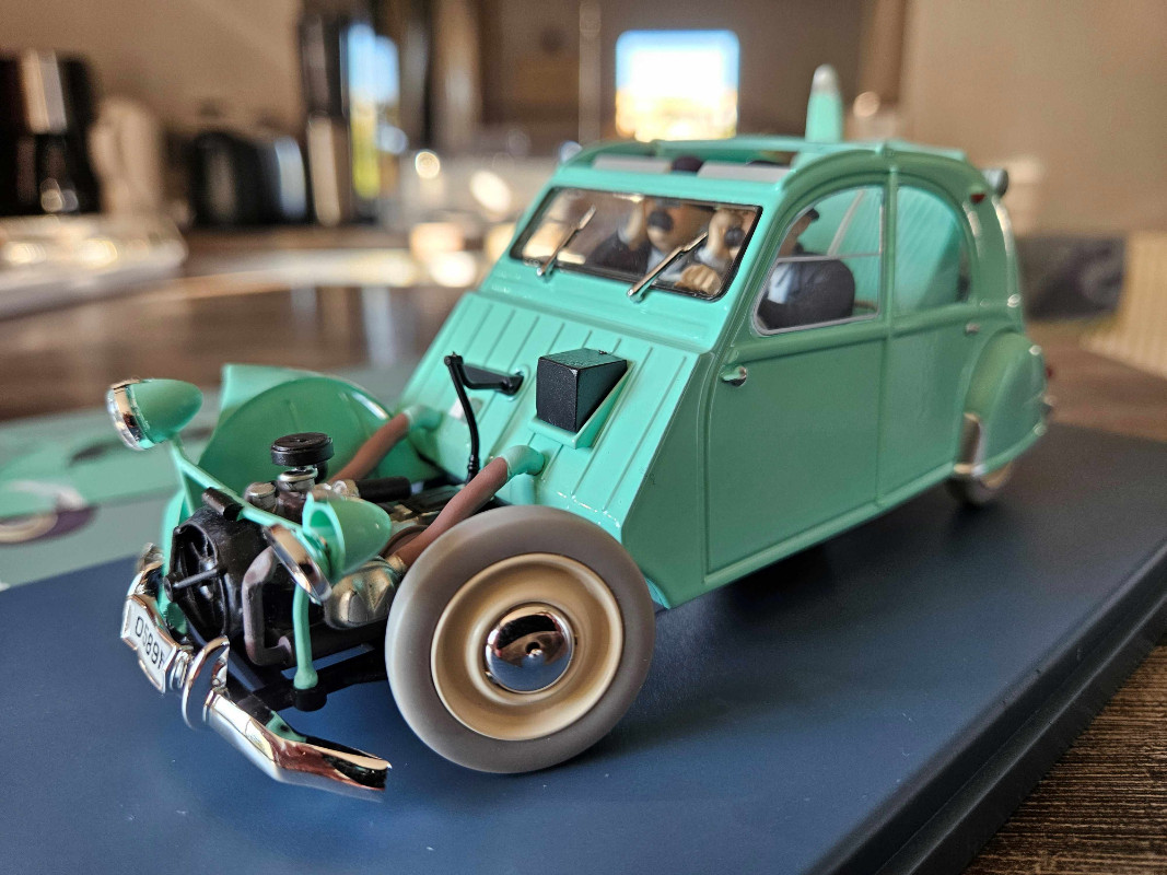 Oui elle a chargé la 2CV des Dupont.1/24, je n'ai qu'un modèle (en très mauvais état), celui des Dupond (t) dans les Bijoux de la Castafiore