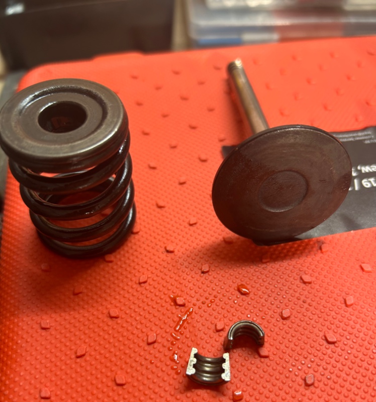Donc hier j'ai "nettoyé" mes portées ... :) Et décrouté la calamine collée derrière les têtes des soupapes, et bien tout remis en place. Là pour le coup, vu la puissance des ressorts, obligé d'avoir un lève soupape. J'en ai acheté un merdique sur amazon, ça a fait l'affaire vu que je ne compte pas l'utiliser souvent , mais il s'est retrouvé tordu à la fin des opérations et ne rentrait plus dans sa boite.. . Je l'ai redressé à coup de masse. N'achetez donc pas ce modèle :