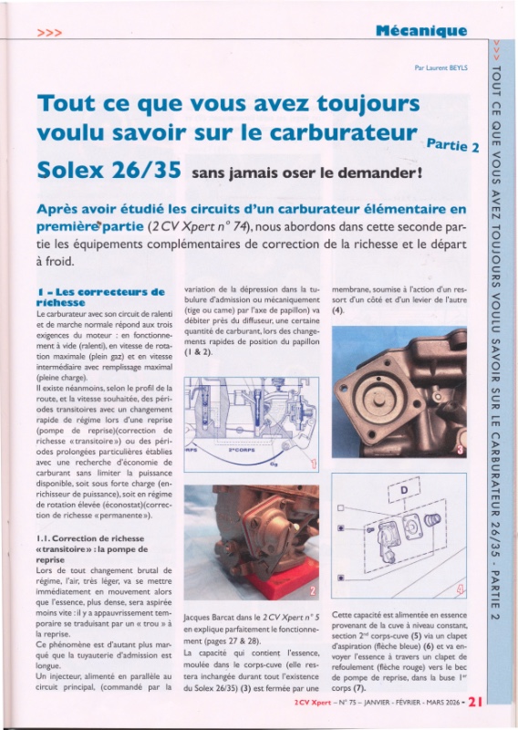 vous avez un excellent article sur le départ à froid d'un moteur équipé d'un 26/35, dans le dernier 2cvXpert, qui vient tout juste de sortir !