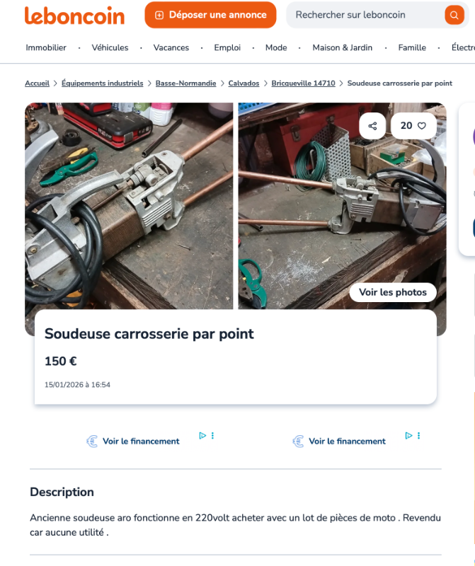 Tu aurais dû l'acheter cette soudeuse tu l'aurais revendu le double 100% de bénef