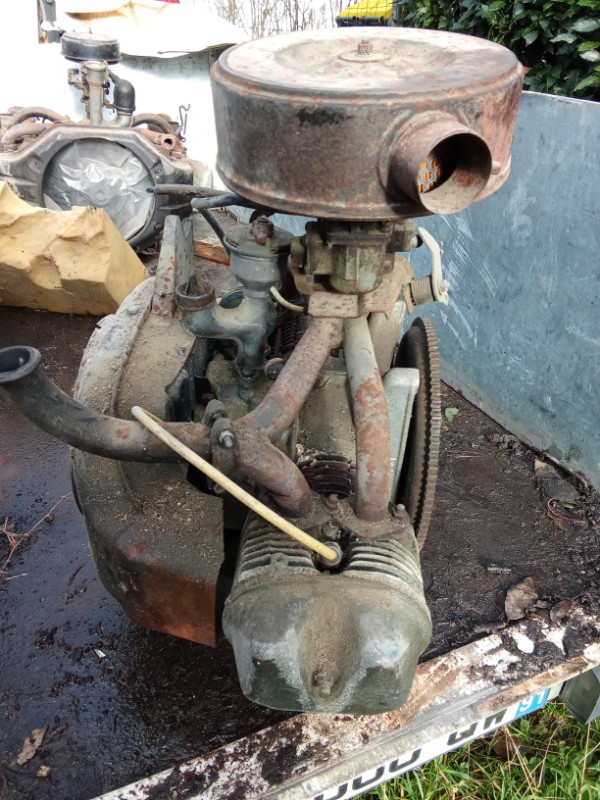 Il a sans doute équipé un tracteur ou une tondeuse, d'où le renvoi d'angle de type "Peugeot" au-dessus du volant, pour le câble d'accélérateur. Et un filtre à air genre "Renault" en prime