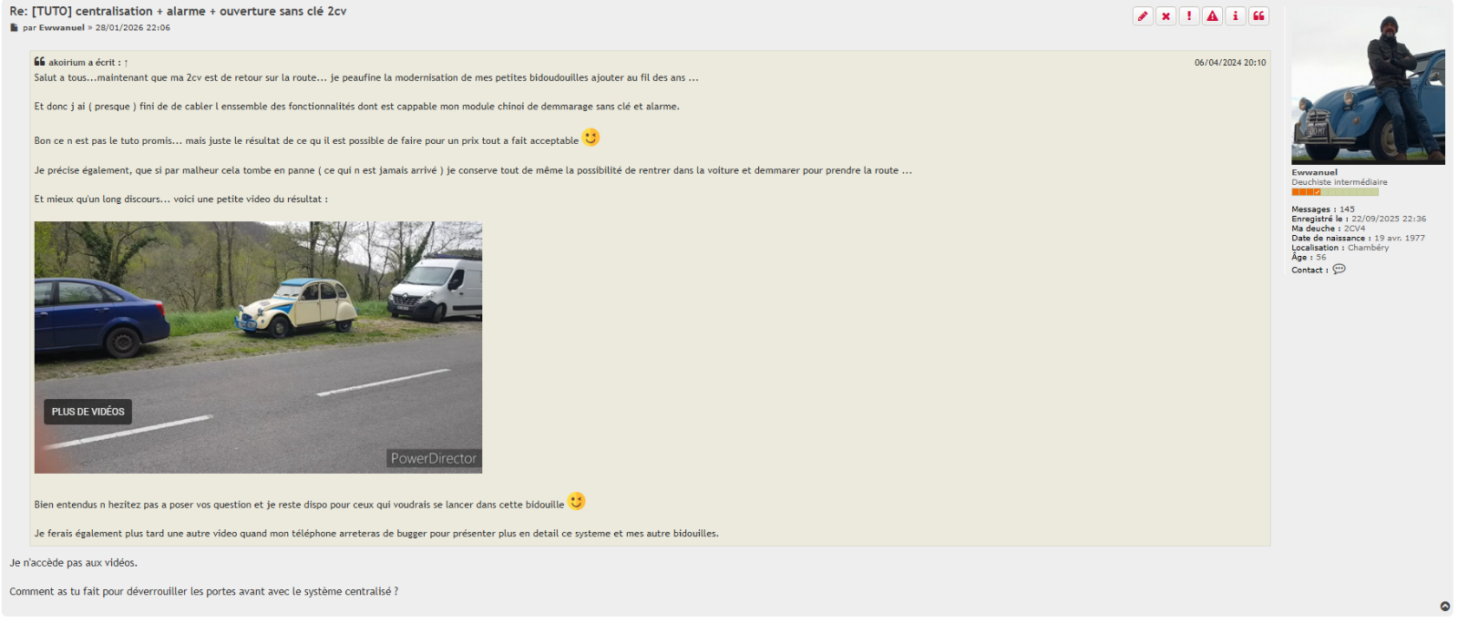 Vous rêvez d'une centralisation sur votre 2cv ? et bien je l ai deja fait et plus encore !