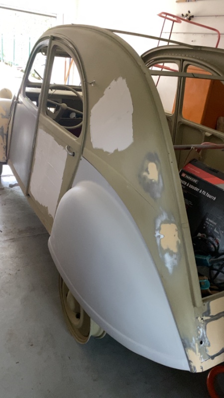 Petites nouvelles de la 2Cv je continu à souder et retaper les éléments et je dois dire que je me décourage un peu … étant pas carrossier j’ai beaucoup de mal avec le mastic.