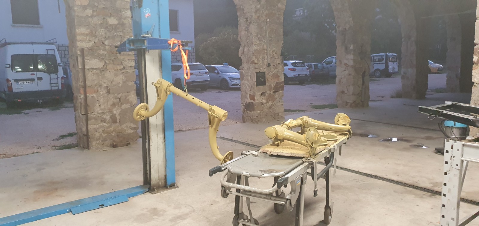 Les trains roulants sont arrivés avec une ambulance pour être peints on dirait...