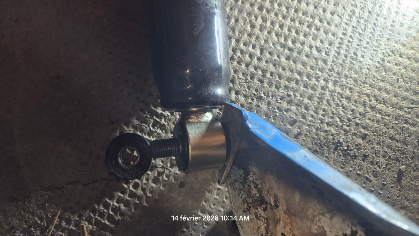 Il y a un petit soucis du coté des flasques de l’essieu, le point de pivot est trop prés du flasque et le corps de l'amortisseur viens buter dessus :