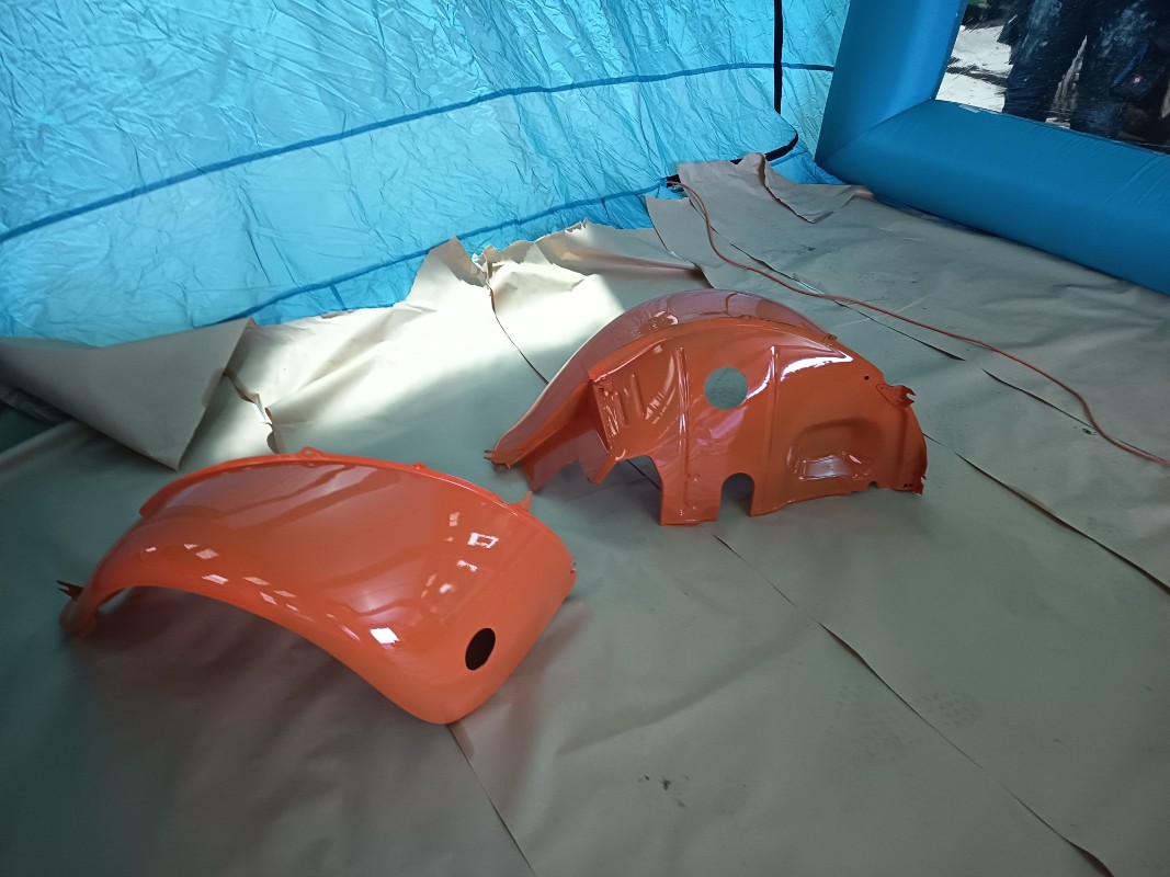 Mise en peinture des ailes test d une cabine gonflable prochaine étape pose du vernis