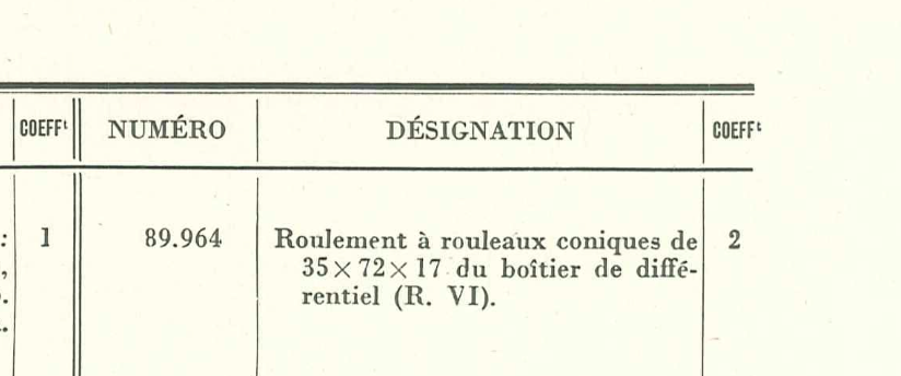 ce qui m'ennuie, c'est que sur 3 Dictionnaires Citroën de Pièces Détachées (de 1949 à 1960), il n'y a que des roulements coniques en 17 millimètres d'épaisseur.