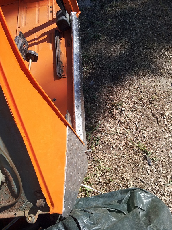 on aperçoit les plaques pour "refaire" les plancher avant, et la tôle en grain de riz en aluminium pour le bas de caisse...