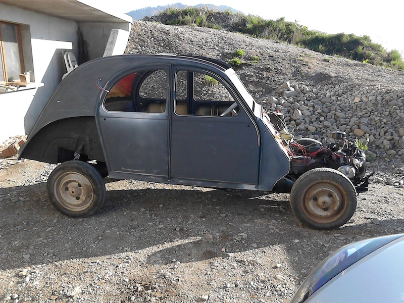 voilà donc la suite des photos, avec le démontage de l'auto (réalisé tranquillement en une petite journée, c'est tellement simple une 2cv :clap: ):