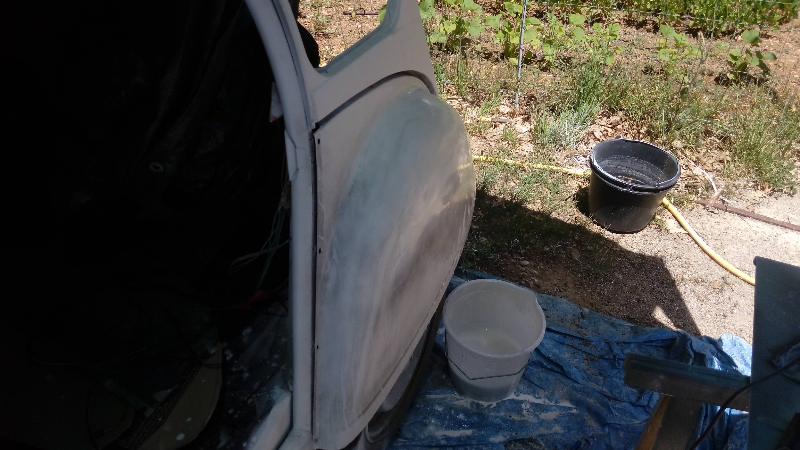 pour commencer je ponce toute la carrosserie a la ponceuse excentrique au P120 , P180 , P220.