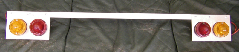 J'ai fabriqué un système de montage de feux stops et de clignotants à l'arrière, système démontable. Je l'utiliserai uniquement pour rouler sur la route et pour passer le CT, en concentres ou en balades en groupe, il sera démonté. Je l'ai fait avec deux plaques d'alu rivetées sur une cornière en alu. Le tout sera fixé sous le châssis par deux vis de 7, sans percer le châssis. En effet sur les longerons arrière il y a deux trous, dont je ne sais pas quelle est l'usage ; j'y ai mis deux écrous clipsés.