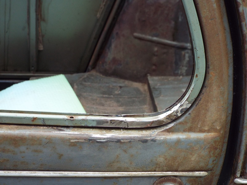 J'ai refait un entourage métallique de vitre arrière. J'en avais trouvé un correct pour la porte droite dans le stock du club, mais rien pour la gauche. Seule solution, en refabriquer un avec des bouts en bon état.