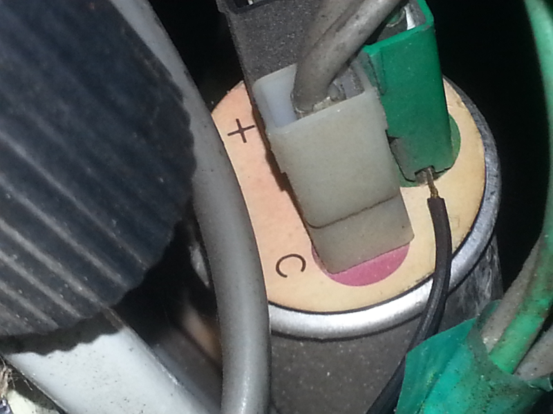 Sur celle en place, 3 broches, une non raccordée (rond vert), une avec cosse deux fils 'rond rouge), une avec cosse un fil (+ ou X...). Sur la neuve à monter, 3 broches aussi, avec 3 inscriptions P, X et L !!