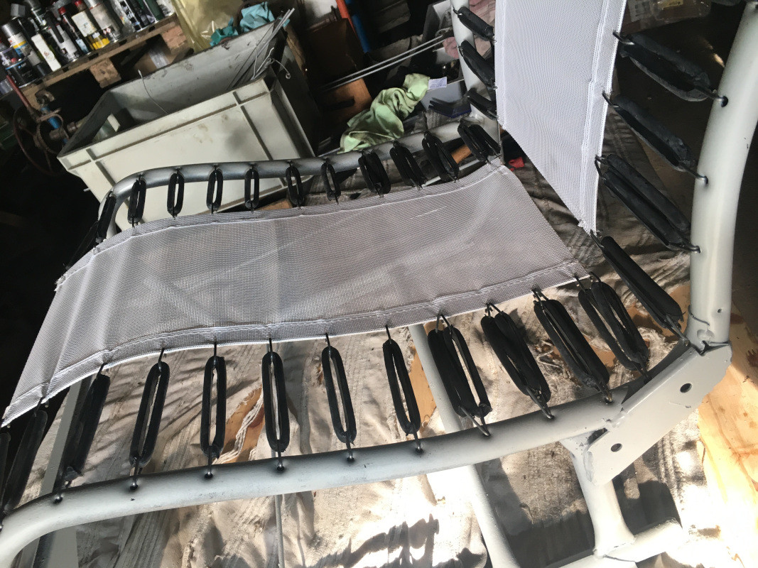 J'ai lu que pour les sujets un peu trop lourds, il était préférable de doubler les anneaux au niveau de l'assise, comme du dossier. Comme j'en suis, des pesants (!), je l'ai fait :