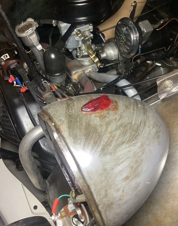 Sur la deuxième sortie j'ai branché un voyant rouge sur le côté gauche du tableau de bord. Un de plus avec le voltmètre, le coupe circuit et la tirette d'amorçage de la pompe à essence !