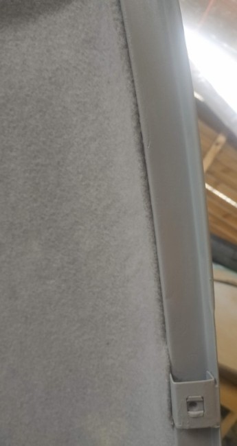 Hier, on a mis la feutrine de l'autre coté et on a aussi inséré celle-ci dans la rainure, dans la structure de la 2CV.
