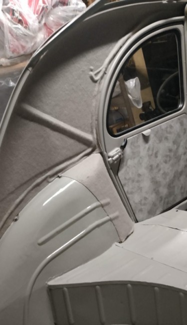 Samedi, on finira de mettre la feutrine sur l'autre coté et dimanche on remettra la capote, la malle arrière, les banquettes et quelques éléments.