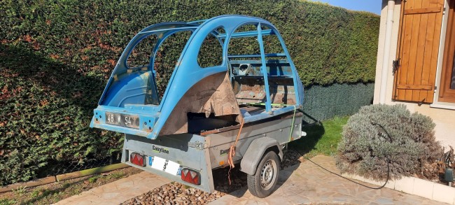 Pascal57 a écrit : ↑14 mars 2025, 07:30Effectivement c'est un ensemble fond + charnière mais nous ne pouvions pas utiliser la pièce telle quelle car sur notre 2cv il faut changer la demi baie, elle est trop abîmée. Mon beau-père a depointé la charnière de la tôle est l'a soudé sur la demi-baie.