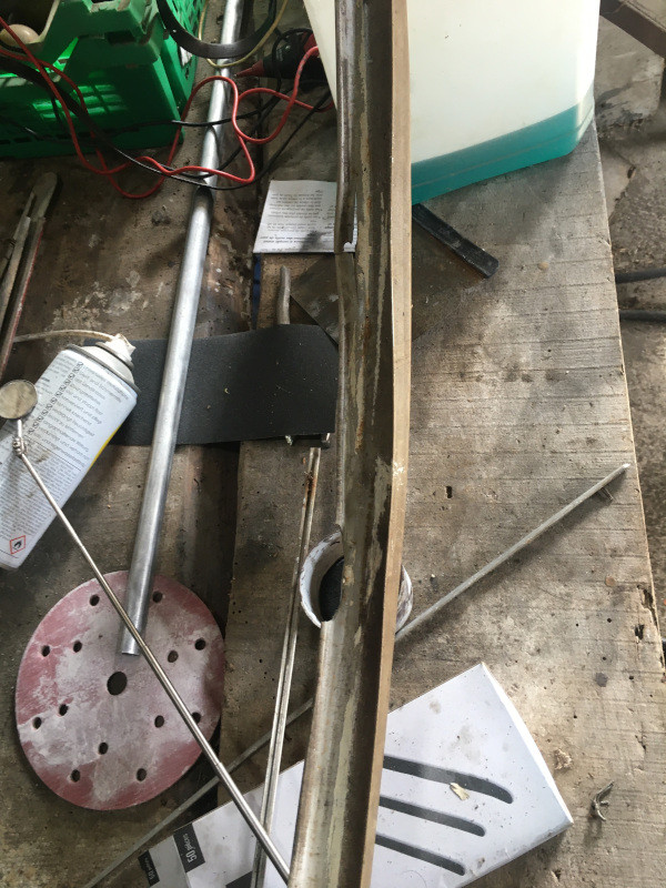 Bref, j'ai donc dessoudé (vous savez, "faire, défaire, refaire..."), ce que j'avais fait, et introduit par l'ouverture une pièce métallique rectangulaire, percée de deux trous filetés à 5X80. Je n'ai plus, après traitement au FEROSE, qu'à fermer le trou du dessus :