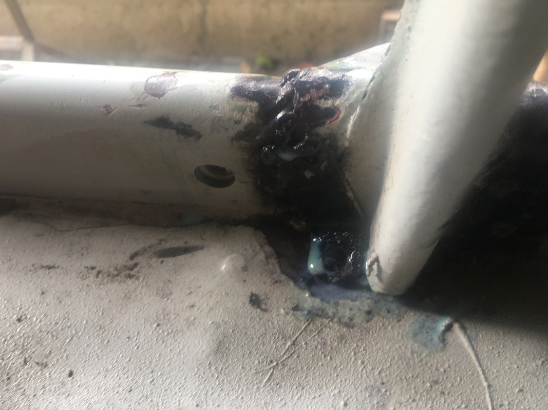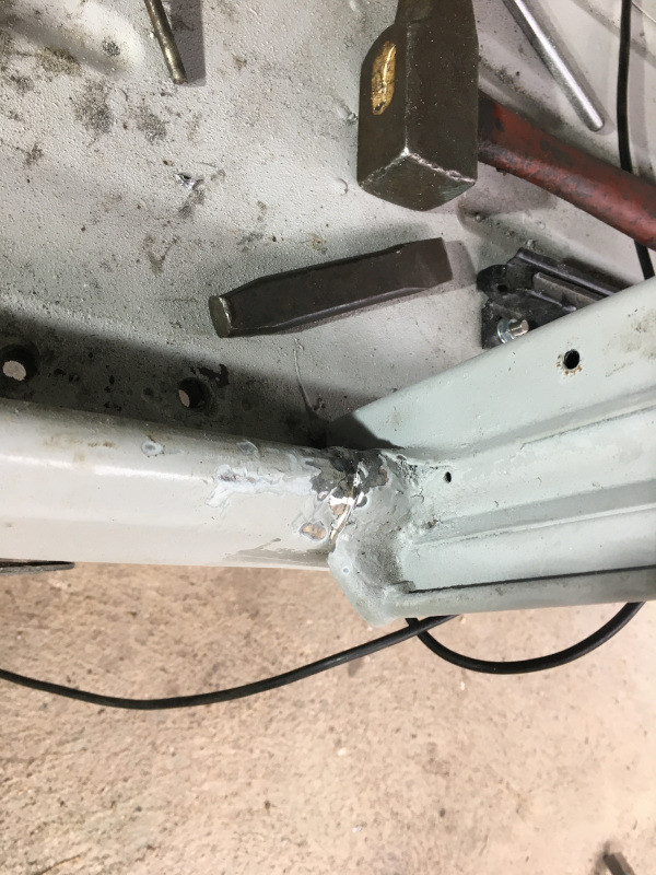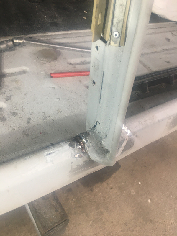 La porte arrière gauche s'est dessoudée à sa base, à l'endroit où je l'avais soudée, bien sûr, comme si la charnière mobile était trop loin de la fixe :