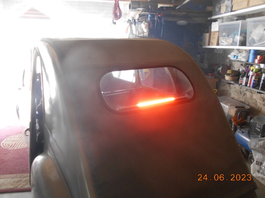 J'ai donc ajouté un contacteur de stop, et installé une réglette de feux led sur la vitre arrière; Avec un feu stop qui s'allume je suis plus tranquille !!