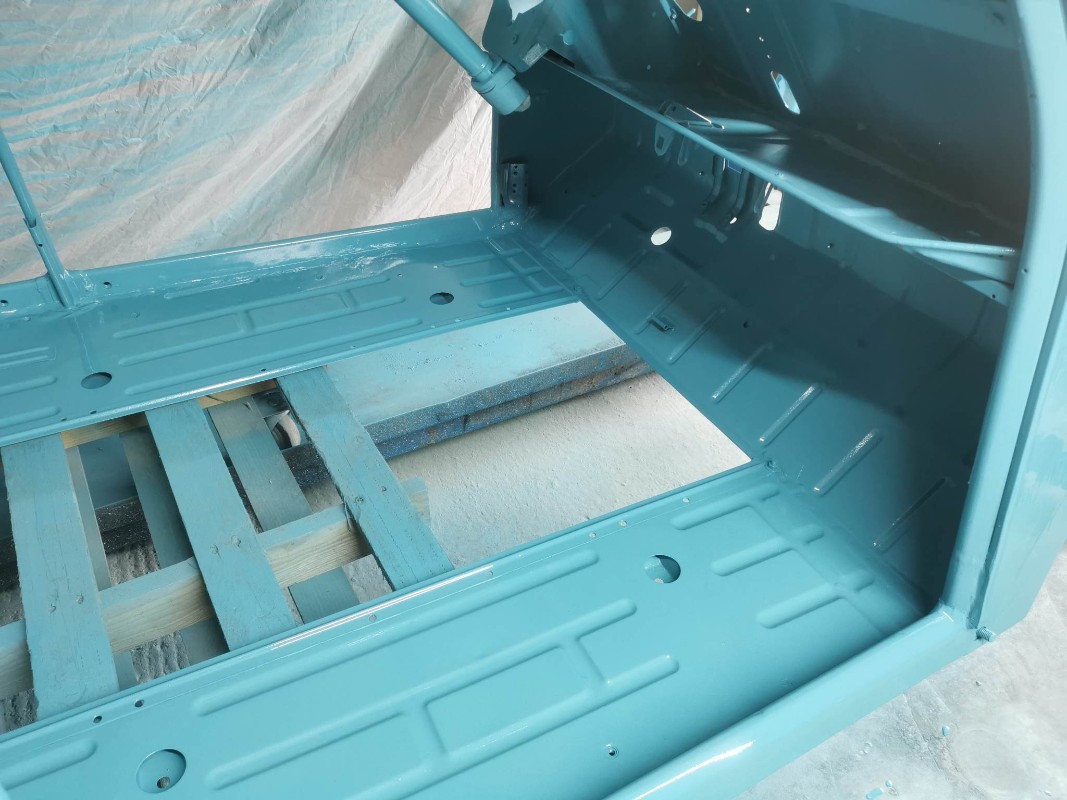 reste plus que les 2 ailes avant cabossé et sablage des intérieurs . le capot qui a un trou et un gros choc sous la plaque immatriculation . le volet d'air a refaire quelle petits trous .les 2 coques de phare . les joues d'ailes avant et âpres fini le bleu je vous met ca en photos suivant les étapes bien sur