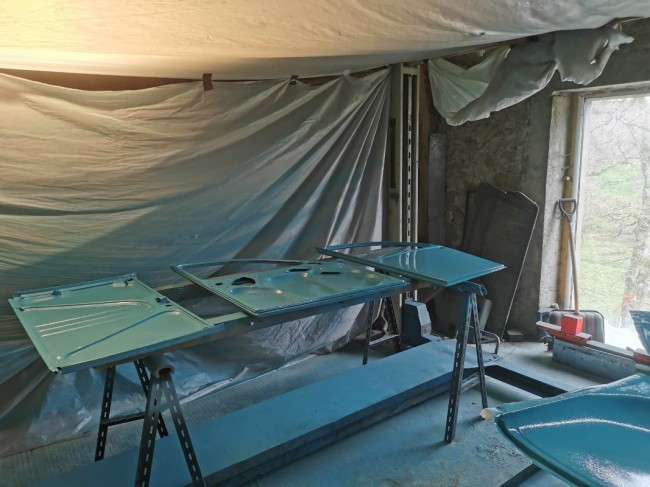 bon samedi 2 cv mais vu le temps 5 degrés au garage pas terrible pour faire de la peinture pour fini les éléments qui manque un coté a peintre