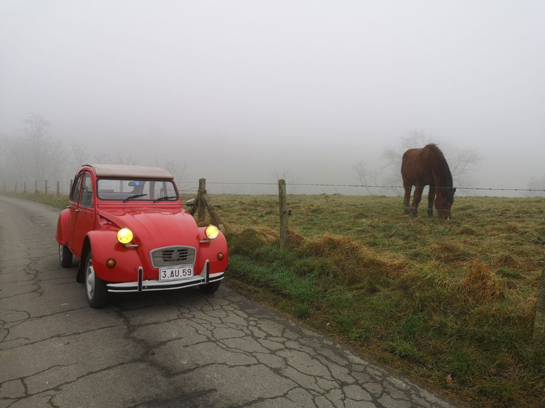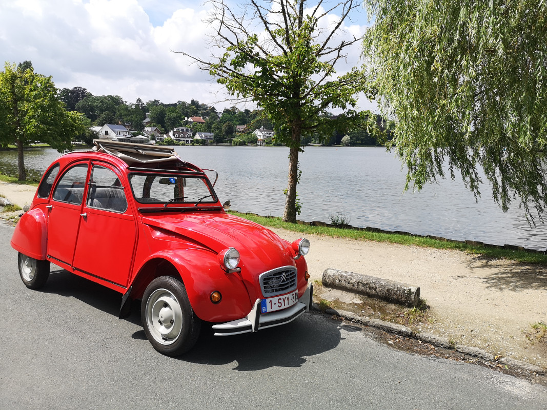 Remontage, réglage du freins à main et de l'embrayage, purge des freins de service, et on descend... Au Lac de Genval, pour ne pas changer!