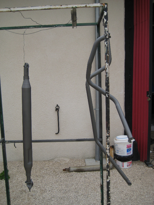 Après réflexion,peinture haute température 900°(fonte) sur la ligne d'échappement après décapage de celle-ci.