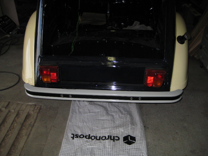 Travail du jour,fin de montage des joints de portes,vitres des portes arrières;montage de 4 portes,pose du pare chocs arrière.