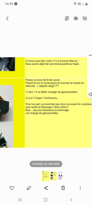 Deuchémoi a écrit : 09 janv. 2023, 17:16 Donc reprends les tests en mettant un fil volant depuis la jauge jusqu'au jaune du compteur et un fil volant depuis le + de la batterie DIRECT ! L'aiguille doit décoller tout de suite.