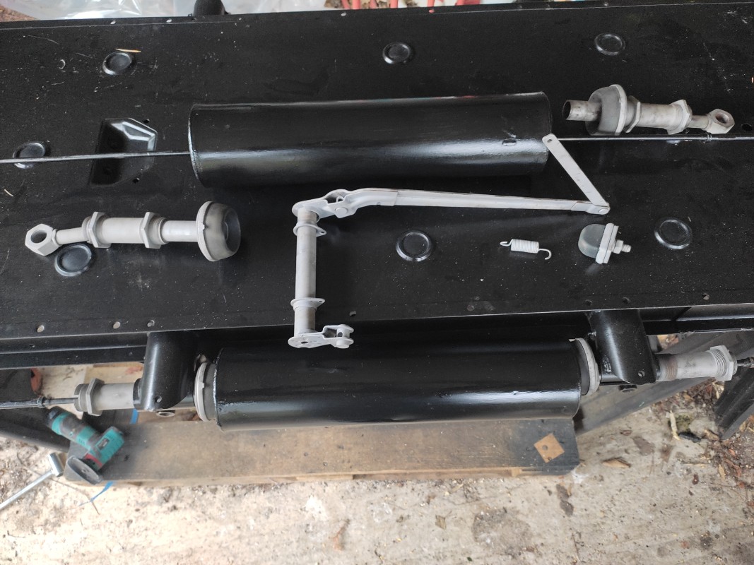 Bon revenons à la réalité malgré ce temps j'ai préparé mes pots de suspension. J'ai sablé les accessoires qui vont avec et le levier de frein à main, je pense passer un coup de rustol sur les embouts de pots et ils seront graissés. Je suis surpris du résultat du sablage sur les caoutchouc des butées anti galop on dirait des neuves.