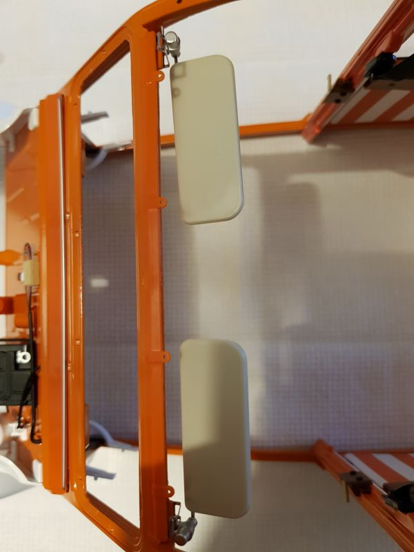 Les bavettes des ailes avant, la plaque minéralogique arrière, le rétro intérieur et le bouchon du réservoir d'essence
