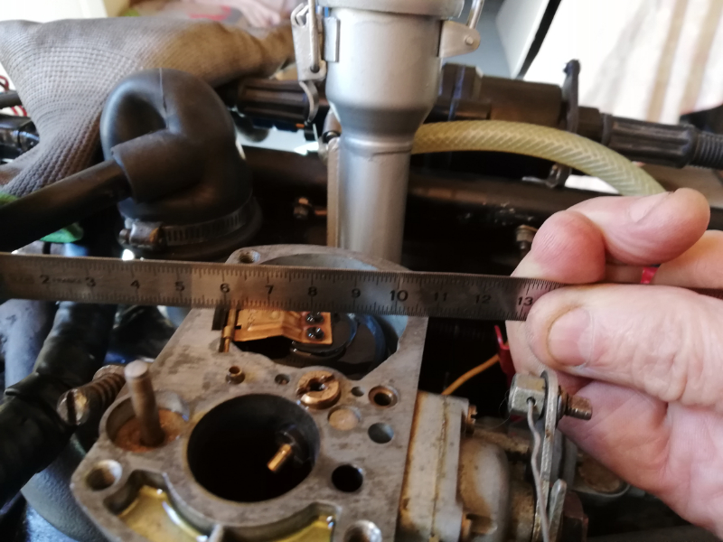 Pour vérifier ton niveau de cuve, tu prends l'autre morceau du carbu, donc la cuve, et tu positionnes le flotteur pour avoir la languette d'appui pointeau parfaitement parallèle eu plan de cuve. Et tu mesures la distance d2 entre la languette et le plan de cuve. A l'épaisseur du joint de cuve près, tu dois avoir d1=d2. De mémoire, c'est aux environ de 8mm, mais faut que je recherche dans ma doc. Sinon, il faut changer le joint du pointeau pour un plus épais (ou plus fin, mais cas nettement plus rare)