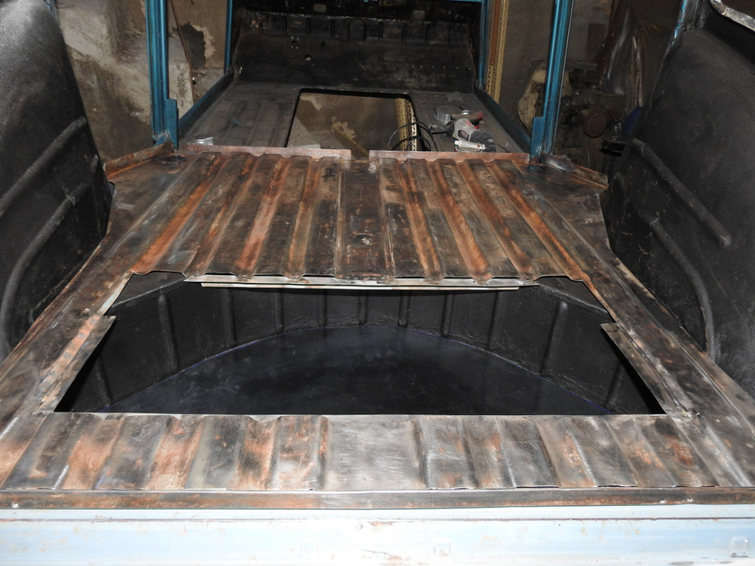 suite du travail sur le plancher enac avec passage a l'anti gravillon du coffre et décapage du plancher et de la trappe