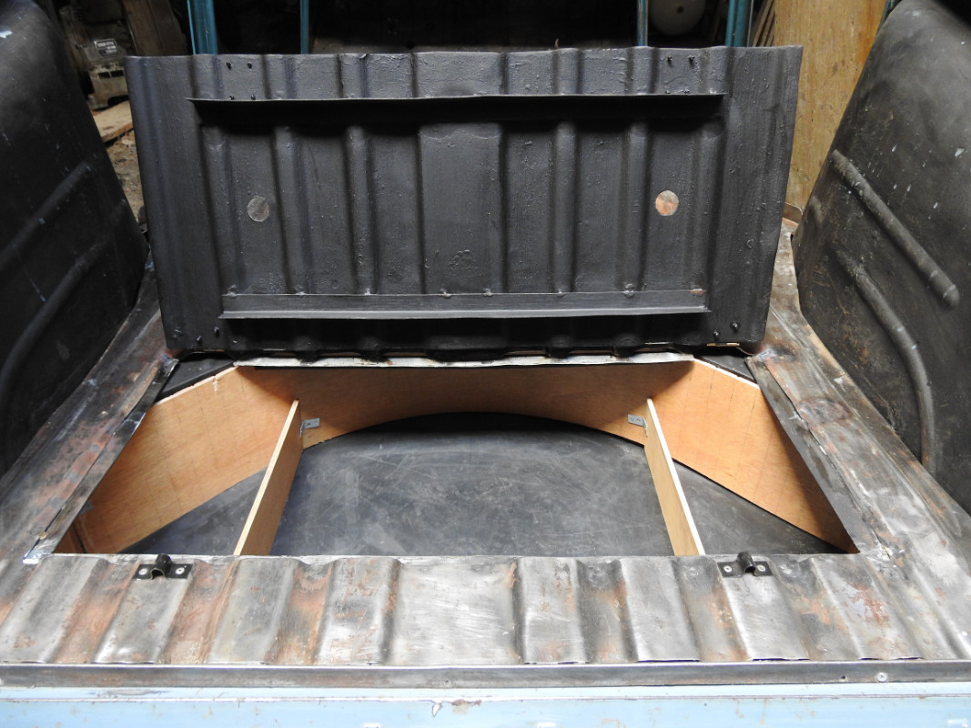 petite avancée sur la trappe ,avec création de compartiments pour ranger le cric et les outils et tout le nécessaire pour pour rouler tranquille et avoir tout sous la main (heu! je veux dire sous la trappe!