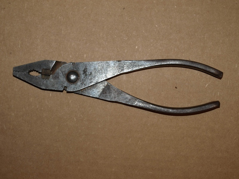 Concernant la pince universelle, on trouve un modèle noir, plutôt classique avec les bras se terminant en pointu c'est celle en photo sur 2CV CO, il semble que le manche soit gravé USA... Bernard possède dans son lot de bord qui serait d'origine de sa 56 (novembre) une quasi identique gravée ARP...J'en connais une aussi qui serait de 2CV d'après le vendeur, identique mais sans inscription... où est la vérité? Les dotations dans les années 50, surtout dans la première moitié, ont dû fluctuer en fonction des fournisseurs et des disponibilités; on retrouve également deux types de pince de marque UNITED, celle gravée UNITED en demi cercle sous le rivet (retrouvée aussi dans un lot de bord de DS 1957); quand on étudie les catalogues, on retrouve la même référence de pince sur les Tractions, les ID/DS et les 2CV; Référence ne veut pas forcément dire que le modèle est identique....Le deuxième modèle UNITED est gravé UNITED U sous le rivet, vu sur plusieurs lots; Il existe par ailleurs pour les JEEPS et autres matériels militaires (WW2, deuxième guerre mondiale) des pinces UNITED A, X, Y, ...) qui ressemblent fortement aux deux modèles précédents; Les photos suivent; Ceux qui en ont d'origine certifiées (!) peuvent nous faire part du modèle possédé; Les pinces que l'on peut voir sur des lots de bord post 58 ont été rajoutées; Des photos suivent...