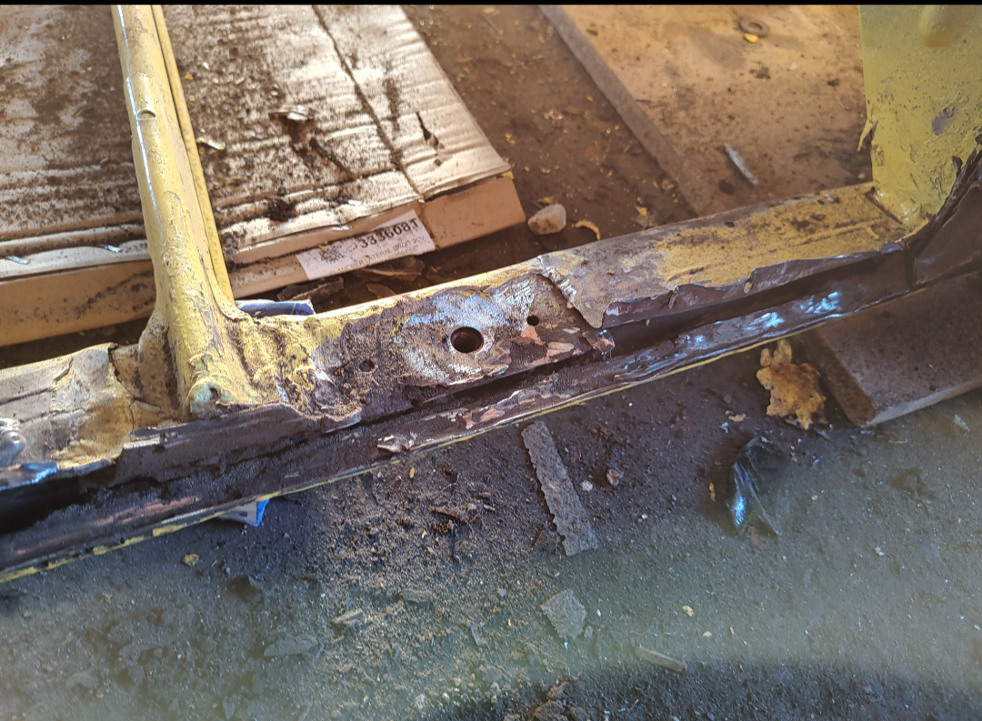 Et côté plancher, un des 2 bas de caisse a été un peu transformé, avec des rajouts à l'intérieur, un peu de tôle et de mastic. Du coup le plancher se retrouve un peu au milieux du bas de caisse...