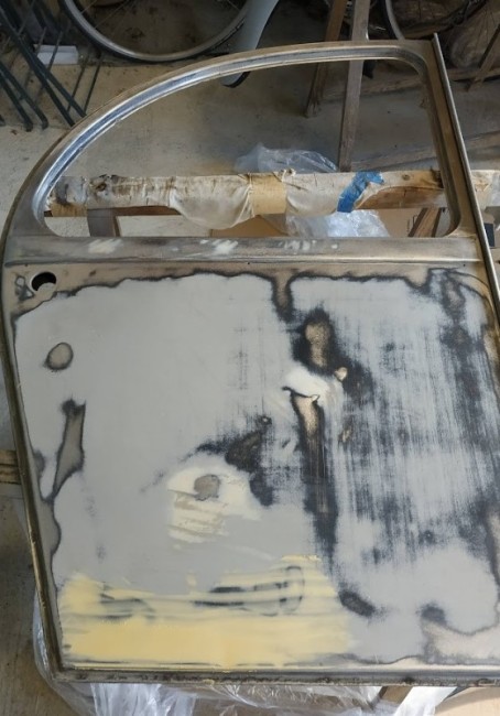 On a décapé les portes arrières en enlevant la peinture et on a aussi redressé les portes au passage.