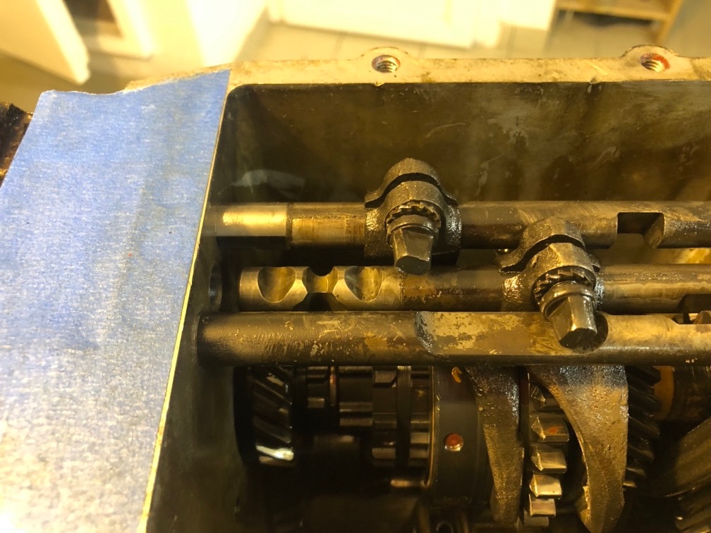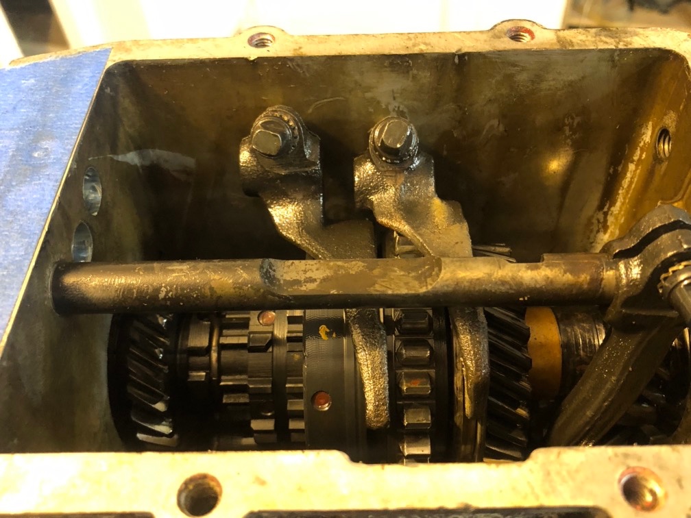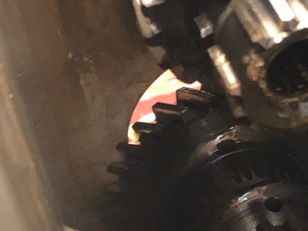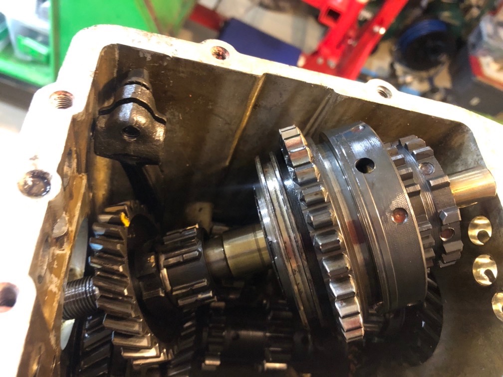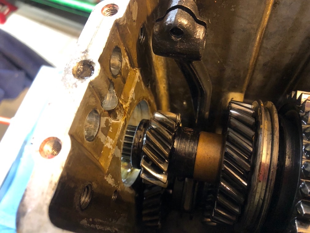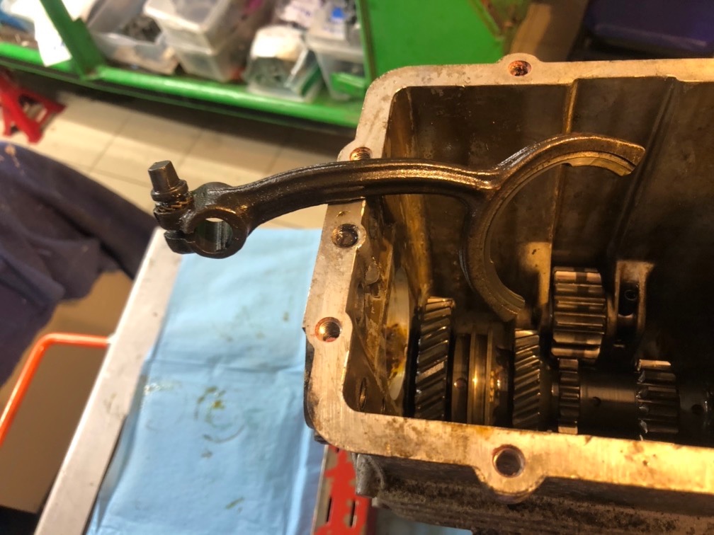 Vous séparez le train intermédiaire du groupe enclenché baladeur de 4 <> roue de renvoi de réducteur (vous les aviez engréné en reculant la fourchette de 4)