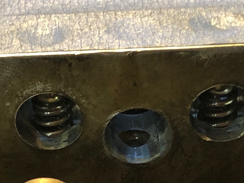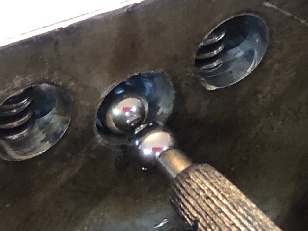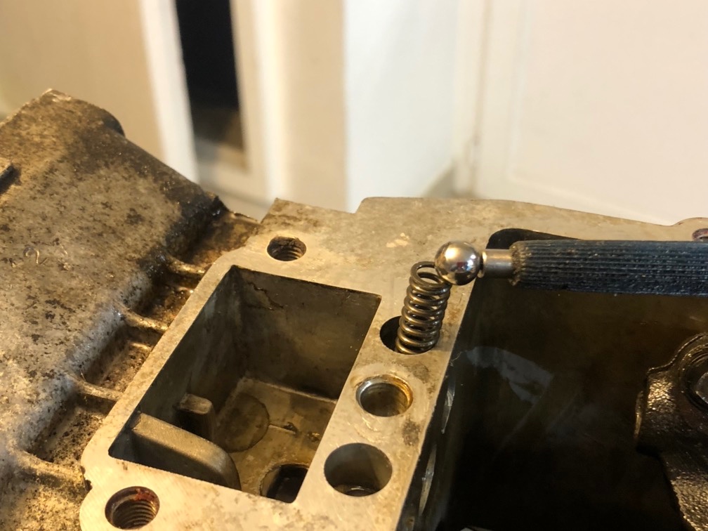 Ce qui nous fait bien en tout, 3 ressorts de verrouillage, 3 billes de verrouillage (une bille et un ressort pour chaque axe de fourchette) et 2 billes d'incompatibilité !