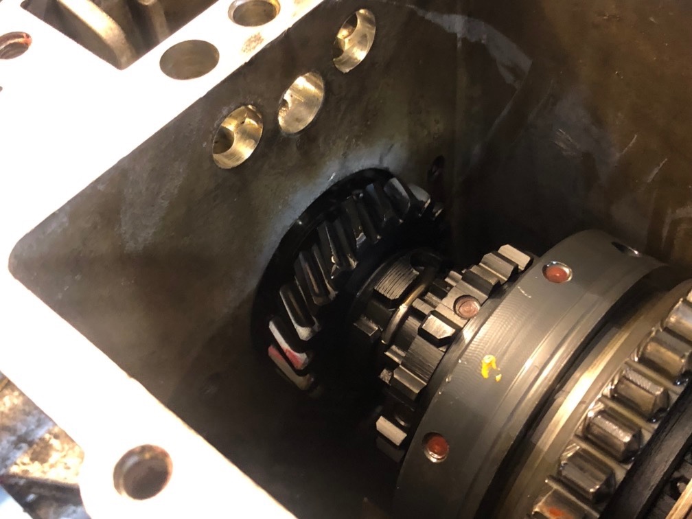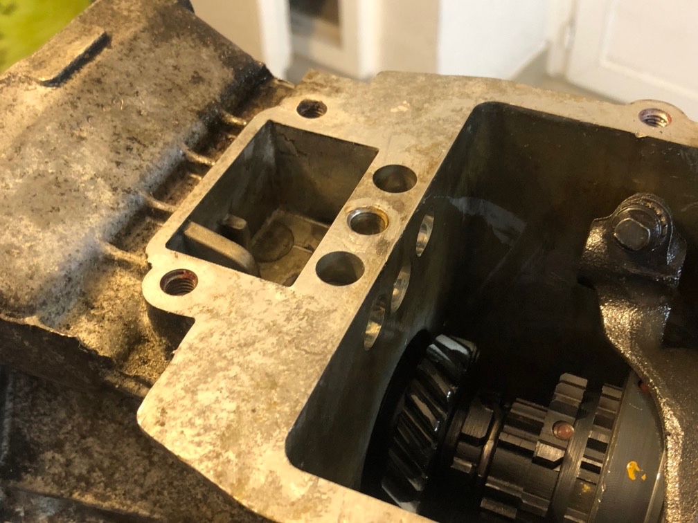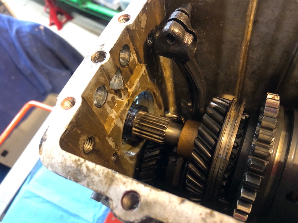Le retrait du pignon conique entraine la chute du train intermédiaire, dans le fond de la BV