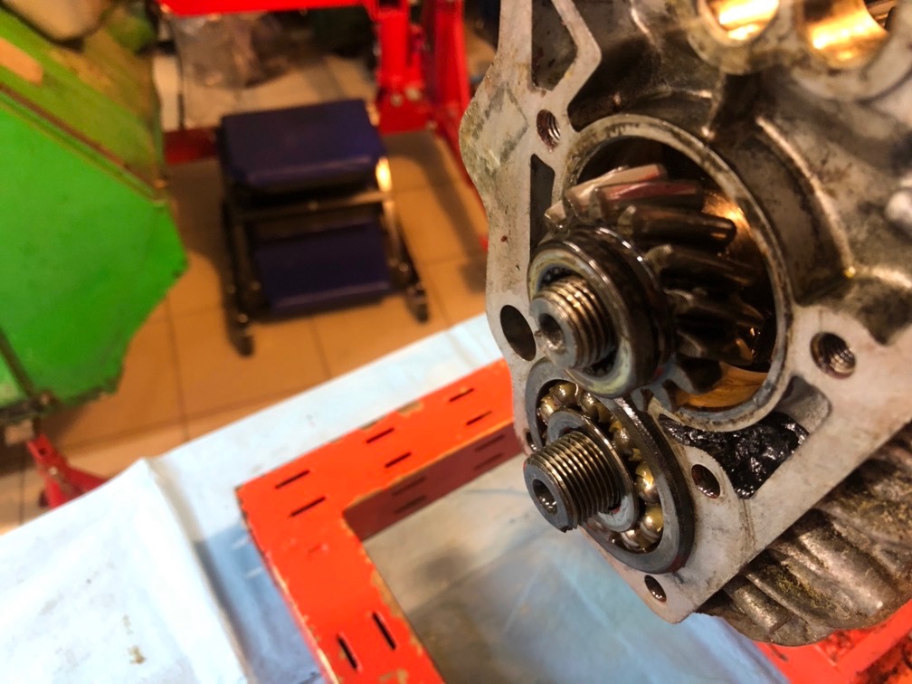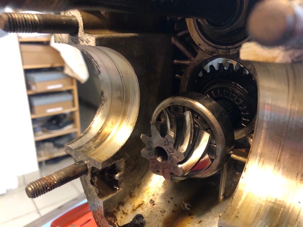 (le roulement arrière est en deux parties et est resté aussi sur le pignon conique)