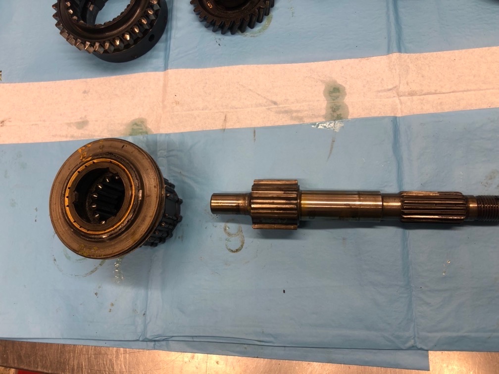 >> puis le pignon de renvoi de réducteur (il est simplement emmanché sur les cannelures de l'arbre primaire)(il a un sens de pose ...)