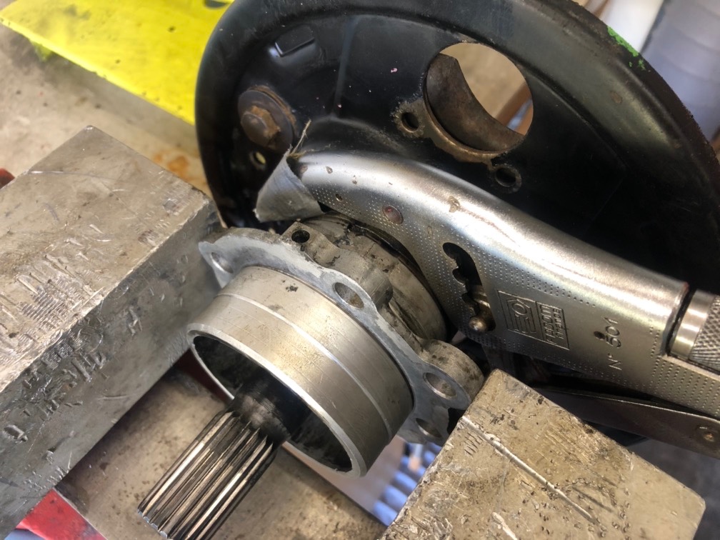 D'emblée, la procédure est identique en cas de sortie de BV pour frein à disque. C'est même plus facile car vous n'êtes pas gêné par le flasque de frein ...