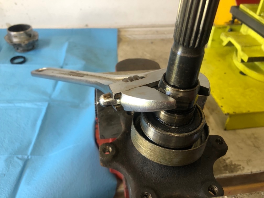 (La première rondelle de calage était restée sur le pignon conique ...)