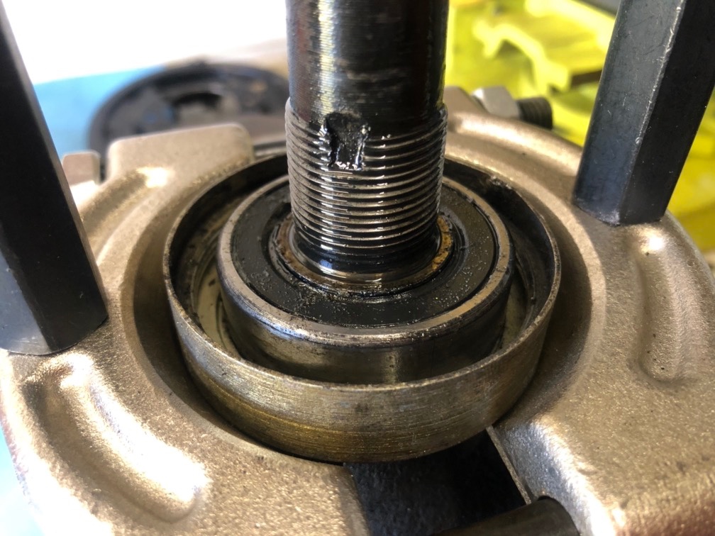 Le roulement avant sort de son alésage (le montage n'est pas serré comme pour l'arbre de commande mais monté "gras")