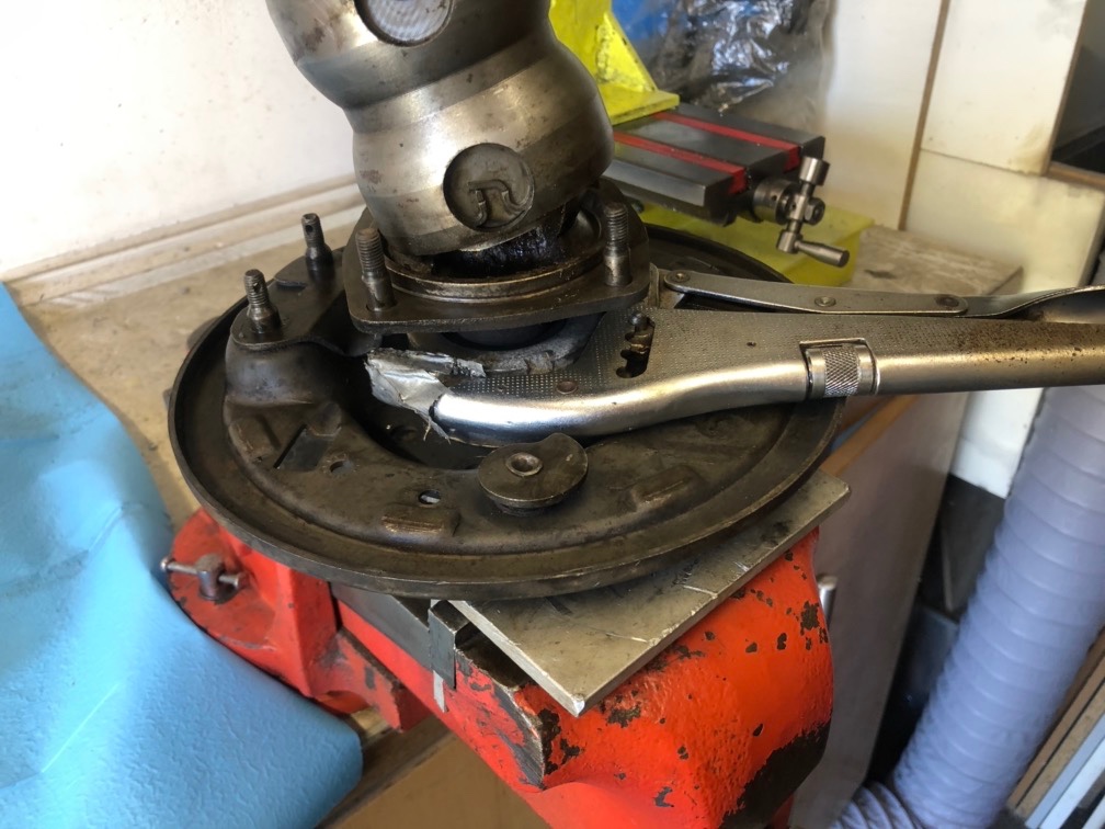 On expose bien la bague-écrou en repoussant le flasque de frein