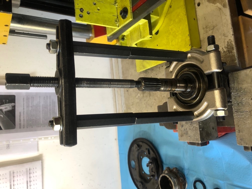 Et un coup de maillet (léger, le coup) sur l'extrémité de l'arbre pour le sortir du palier alu